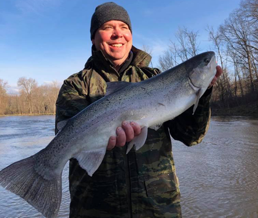 We fish the Big Manistee river from late fall to mid-April for the steelhead and salmon run. Enclosed heated boat.